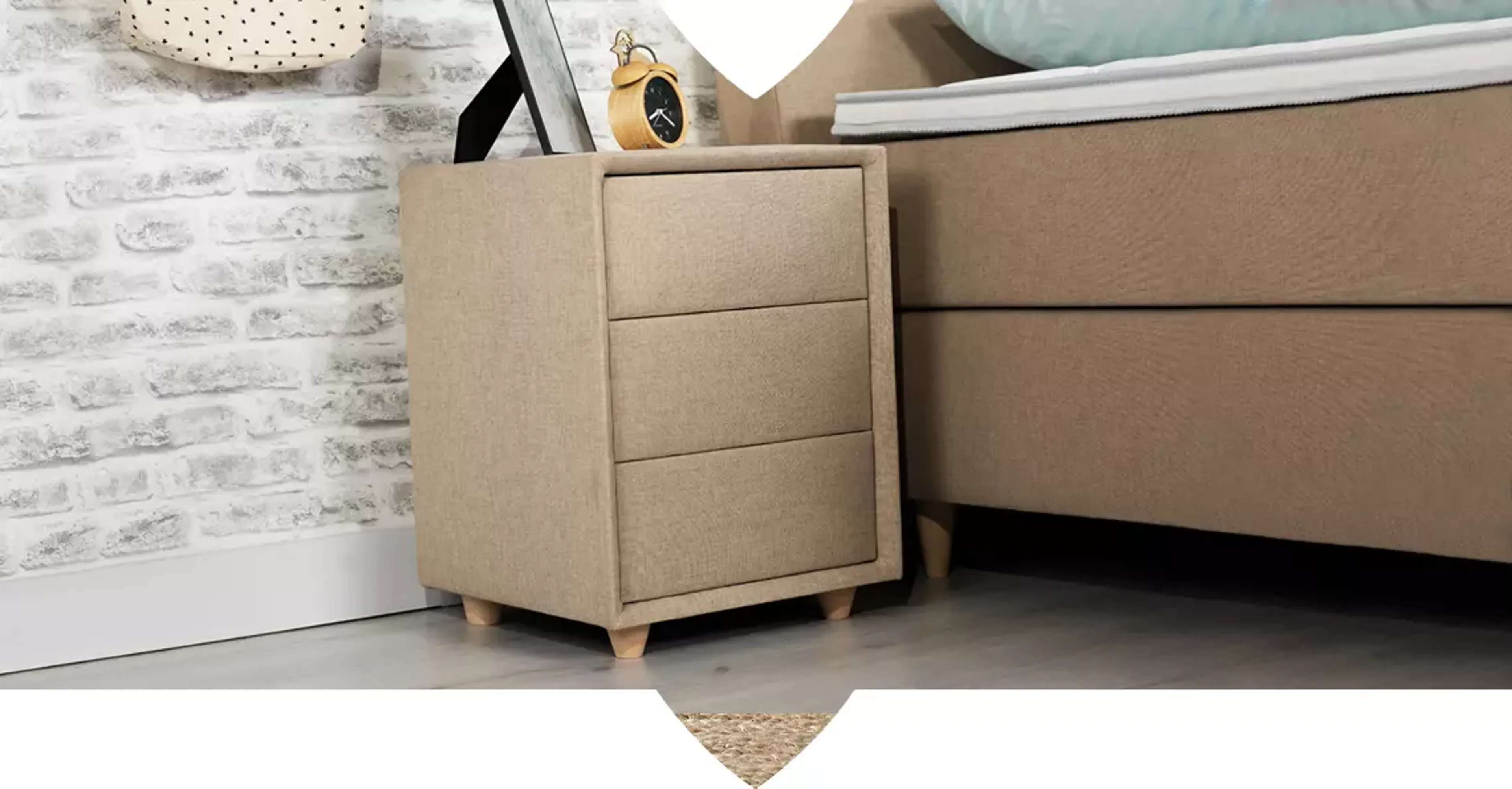 Kan jouw slaapkamer wel wat extra opbergruimte gebruiken? Kies dan voor een nachtkastje met (veel) lades. Vermijd open vakken, want dan gaat het er al snel wat rommelig uitzien. Nachtkastje Frame heeft drie lades die open gaan wanneer je erop duwt. Simpel en onopvallend! Je kiest zelf een stof en bijpassend pootje. Passend bij je boxspring óf juist helemaal niet voor een uitgesproken look.