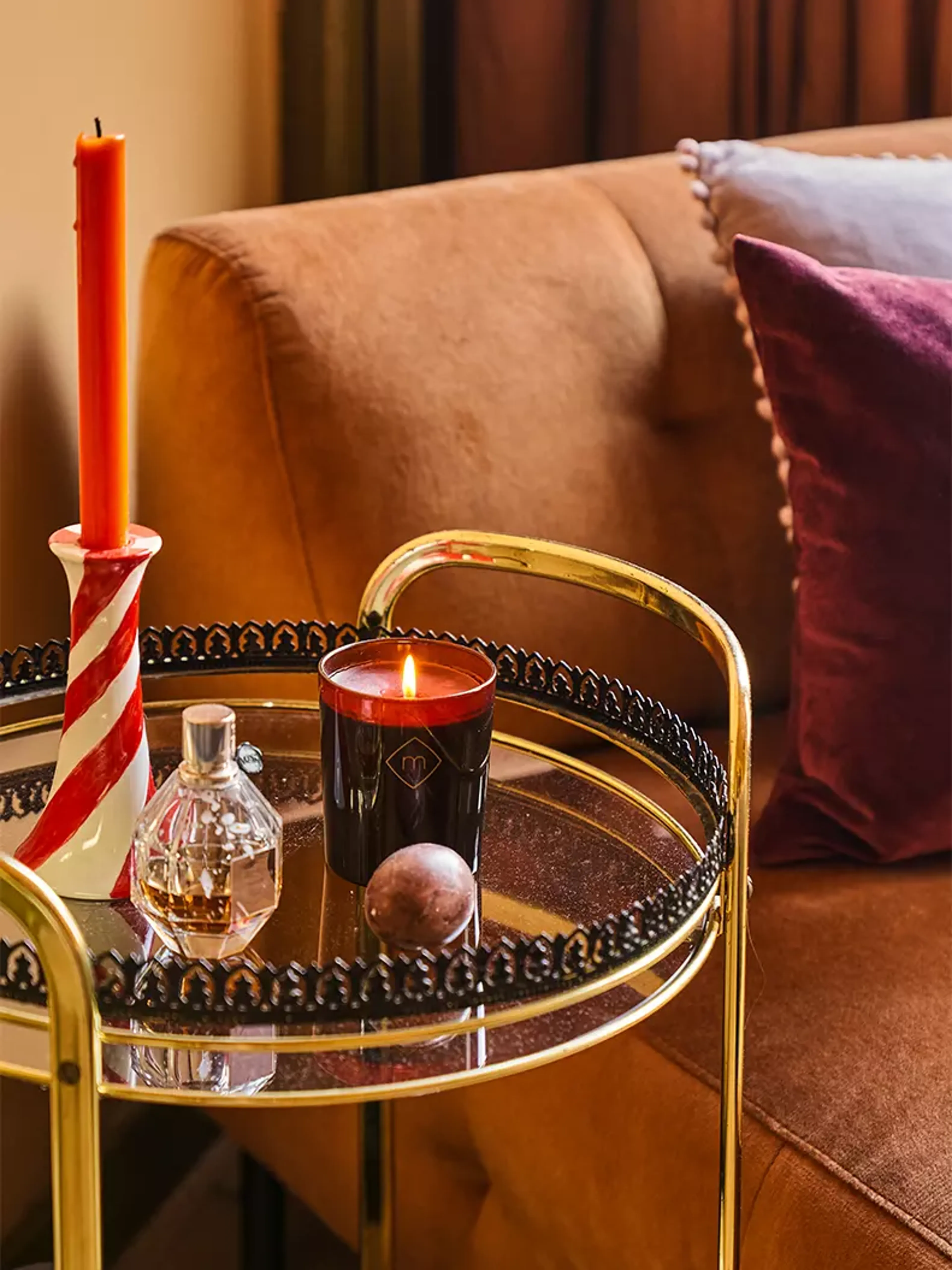 Om de eenheid en knusse sfeer te creëren, heeft Doortje alle muren én het plafond in één kleur geschilderd. Het houtwerk in de slaapkamer, zoals het hoofdbord tegen de schouw, heeft juist een contrasterende kleur. Zo trekt dit mooi de aandacht. “We hadden geen enkele vlakke muur in de slaapkamer om het bed tegenaan te zetten. Dit hebben we opgelost door een groot houten hoofdbord tegen de schouw aan te maken.” De dimbare verlichting en bijzondere decoratie die Doortje bij de kringloop en op vakantie verzamelde benadrukken de knusse sfeer. “Verder zijn gordijnen van vloer tot plafond ook echt nodig voor een hotel chique stijl. ”