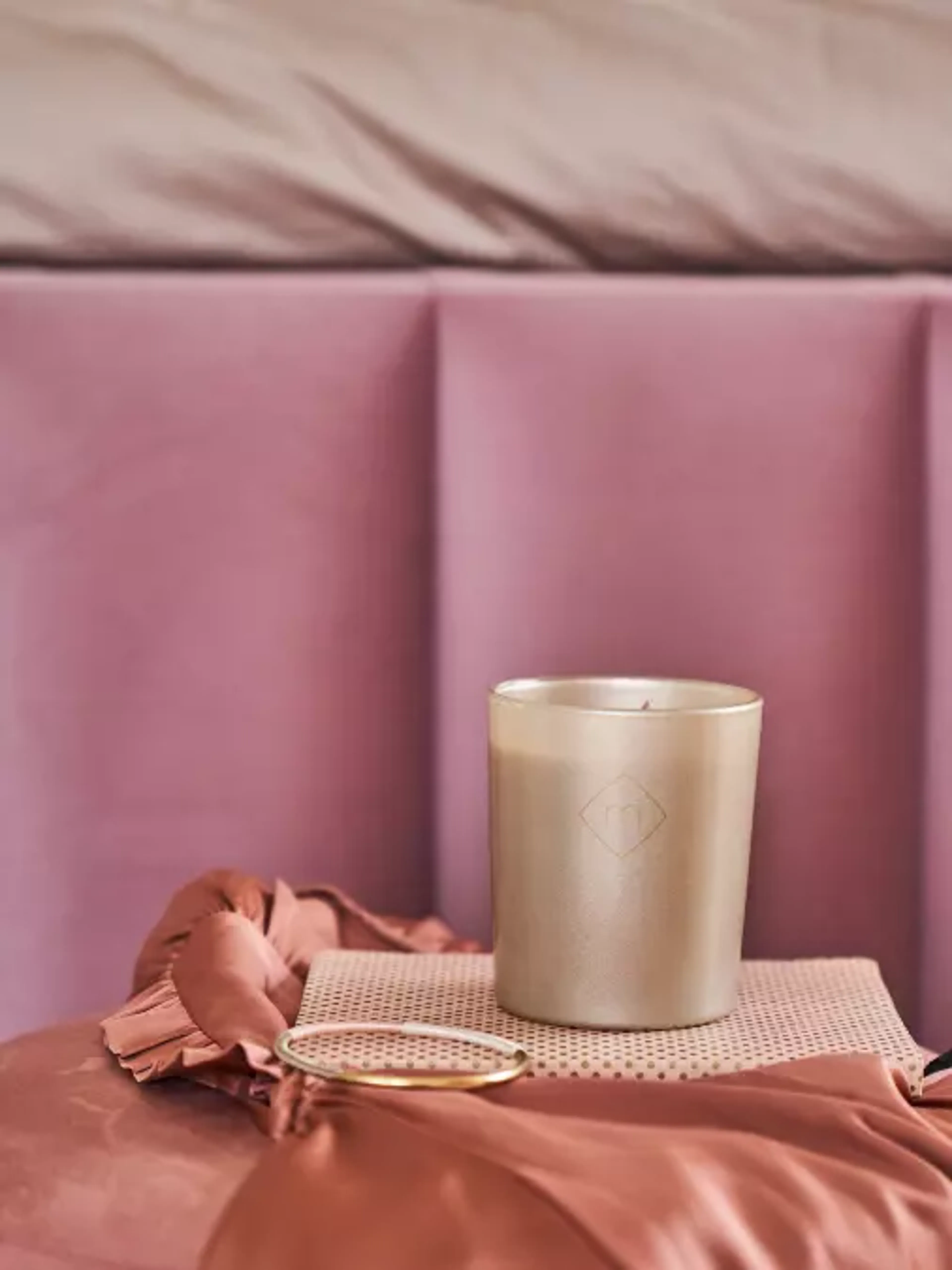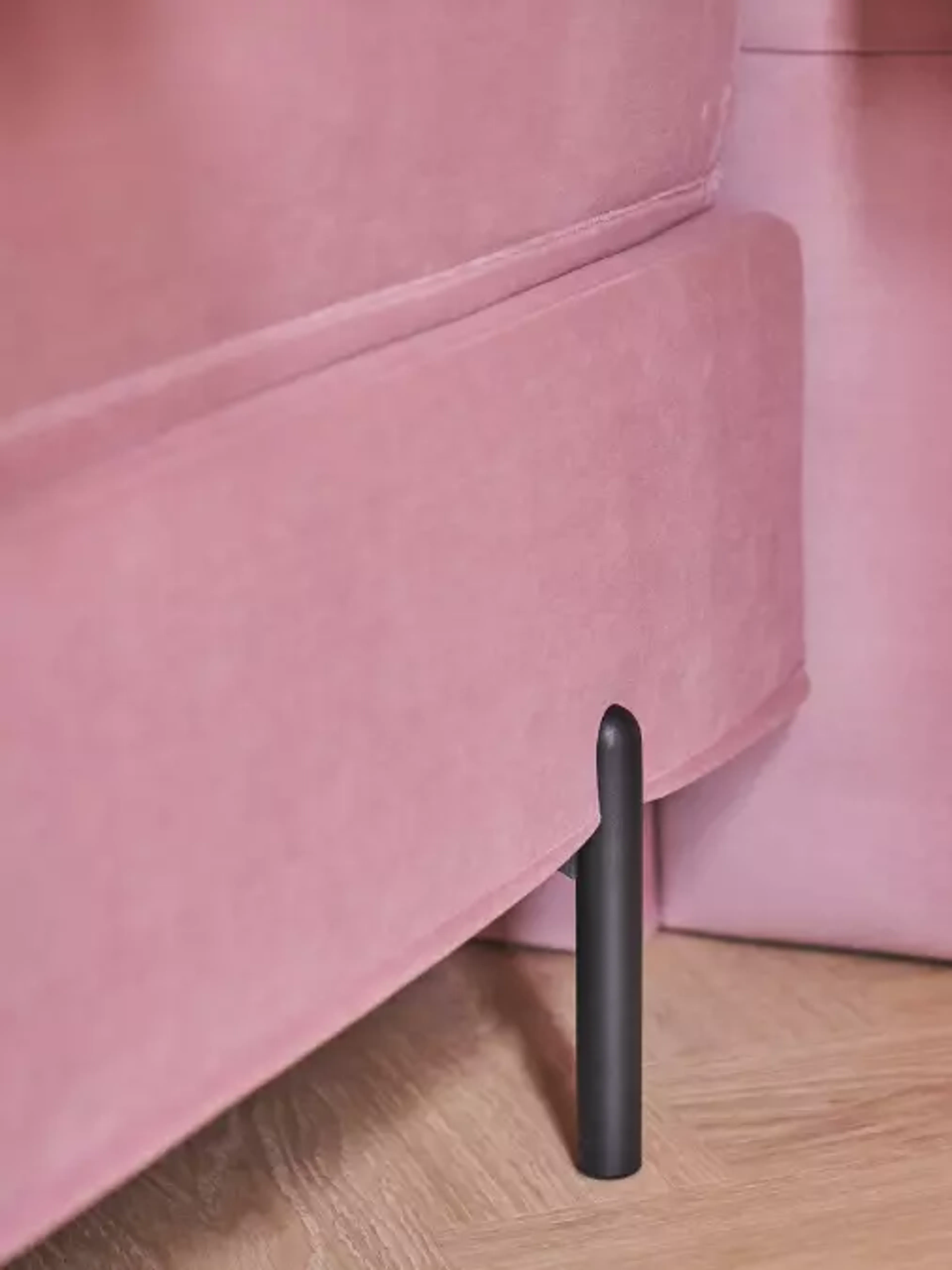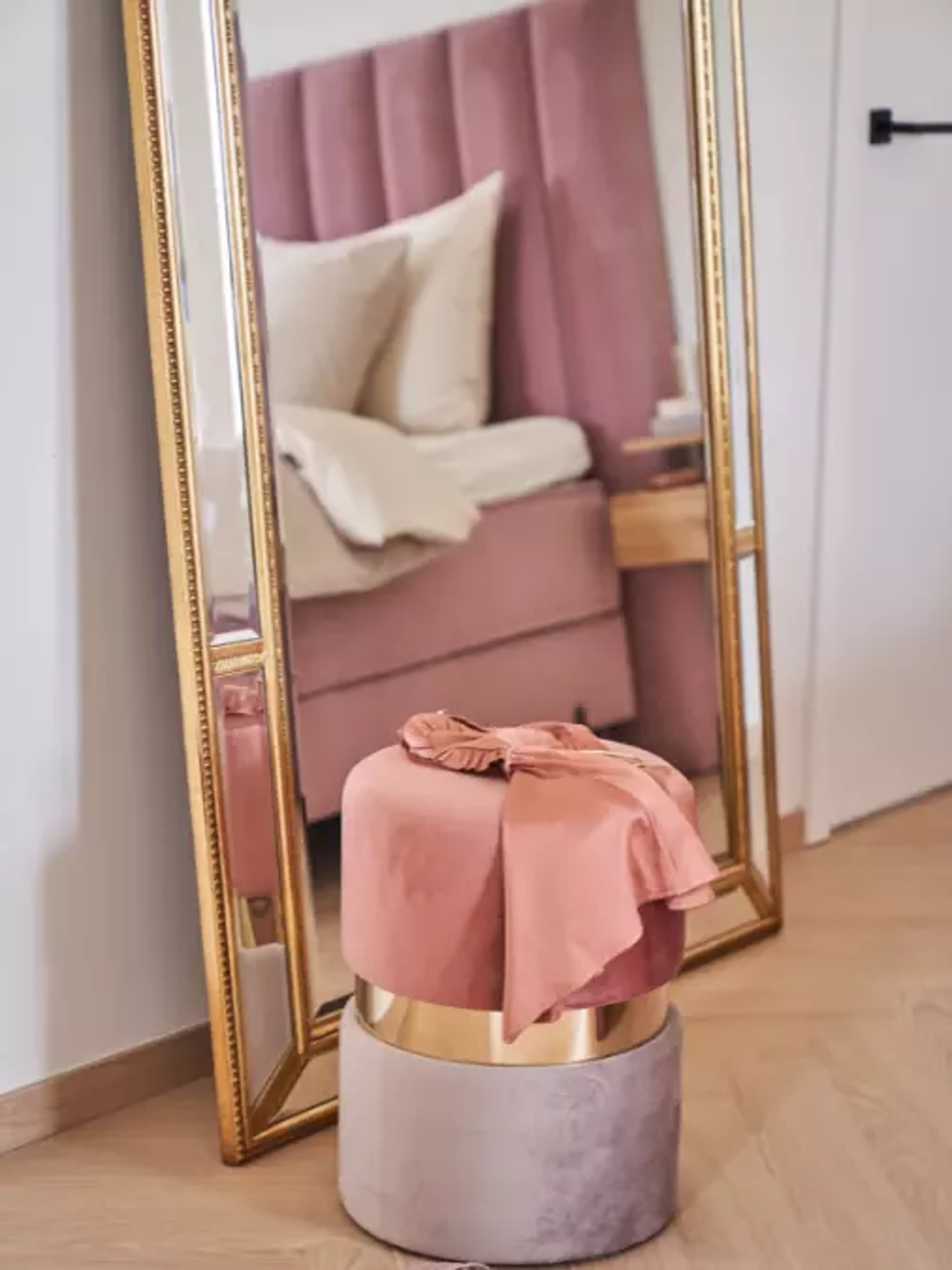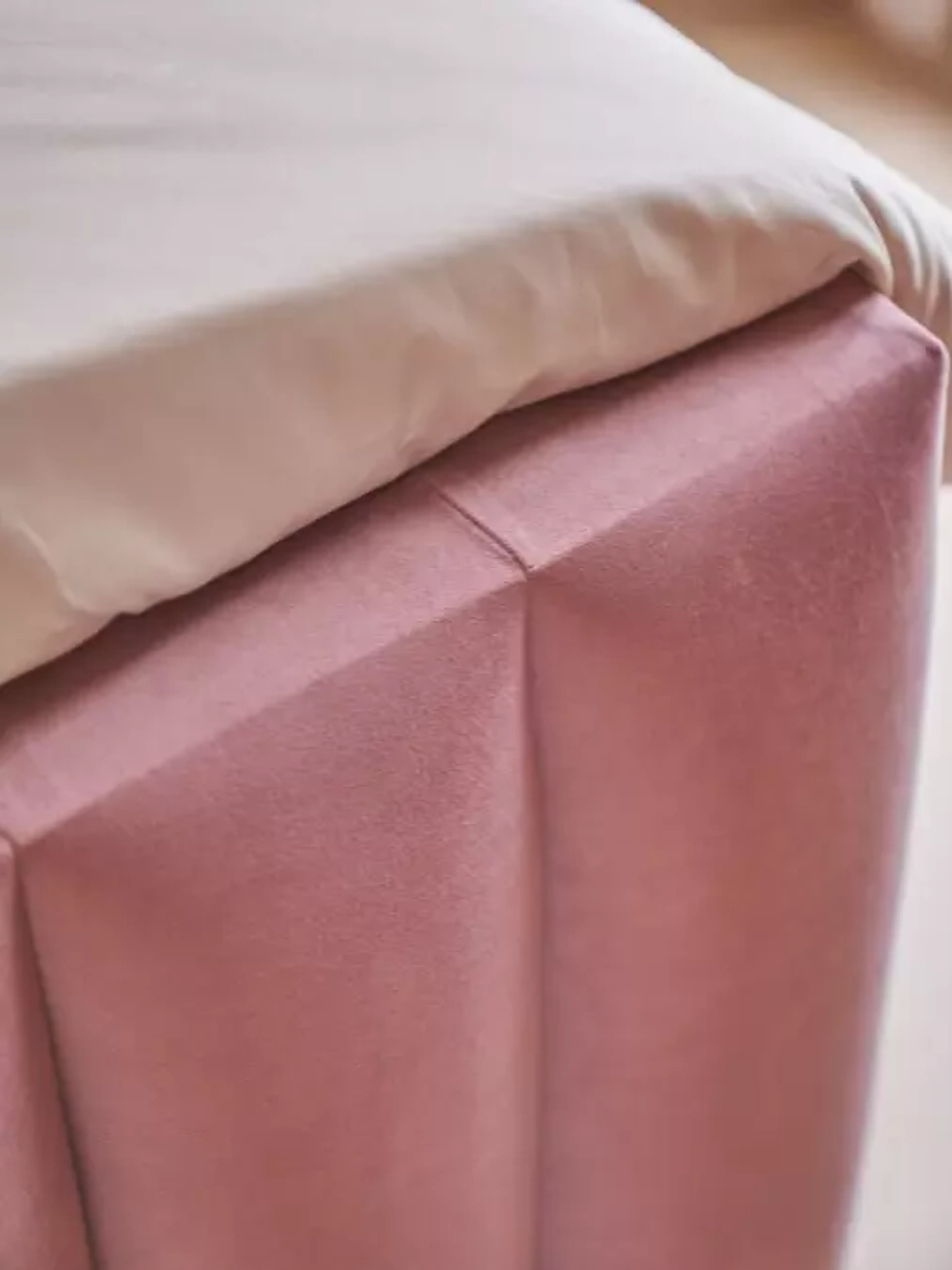 “Bij het inrichten van onze slaapkamer hield ik mijn favoriete hotelkamer in gedachten. Ik vind het fijn dat deze nu heel clean en rustig is met zo weinig mogelijk spullen. Toen we gingen verhuizen, besloten we dat het tijd was voor een nieuw en tijdloos bed. Functionaliteit is voor ons ook belangrijk. De stof is goed schoon te houden en door de hoge pootjes kunnen we er gemakkelijk onder stofzuigen. We twijfelden lang over een beige bed, maar uiteindelijk kwamen we tot de conclusie dat een neutrale beige teint toch niet helemaal bij ons past. Dus zijn we voor de bold choice gegaan. Sieg houdt niet van veel keuzes. Ik koos daarom 3 bedden waaruit hij kon kiezen en toen koos hij Boxspring Royal Metropolis in het roze. Nu is het écht een eyecatcher.”
