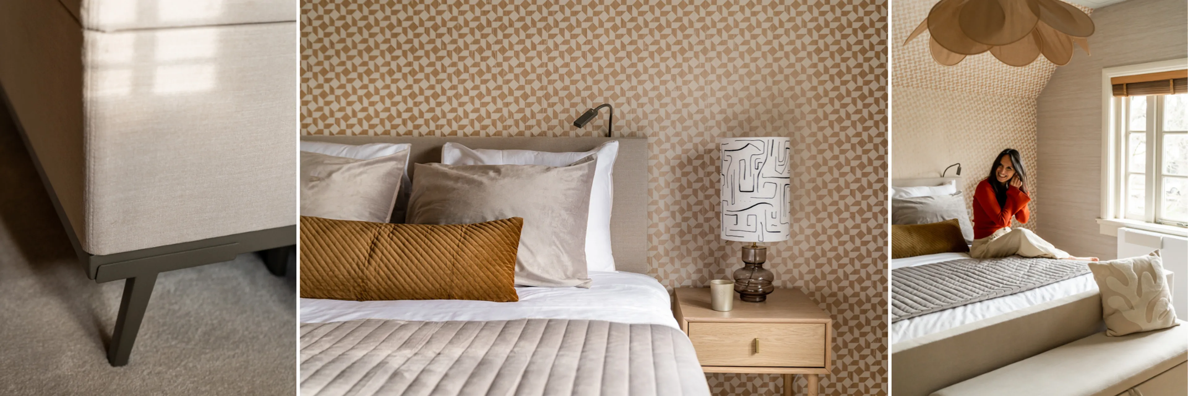 “We hadden al een boxspring uit de collectie van Swiss Sense en wisten dus dat de bedden erg lekker liggen. Ons oude bed was zo'n 11 jaar oud en zeker toe aan vervanging.” Haar oog viel in de winkel op de luchtige, moderne boxsprings uit de Lifestyle by vtwonen collectie. “We werden erg blij van de keuzemogelijkheden bij Swiss Sense. Zo hebben we zelfs de champagnekleurige pootjes kunnen uitzoeken, die weer perfect passen bij de bedlampjes en voetenbank. Dat maakt het chic. De voetenbank is voor Michelle zowel een stijlvolle als praktische toevoeging. “Ik kan mijn beddengoed erin kwijt, maar het staat ook statig en maakt mijn slaapkamer echt compleet.”