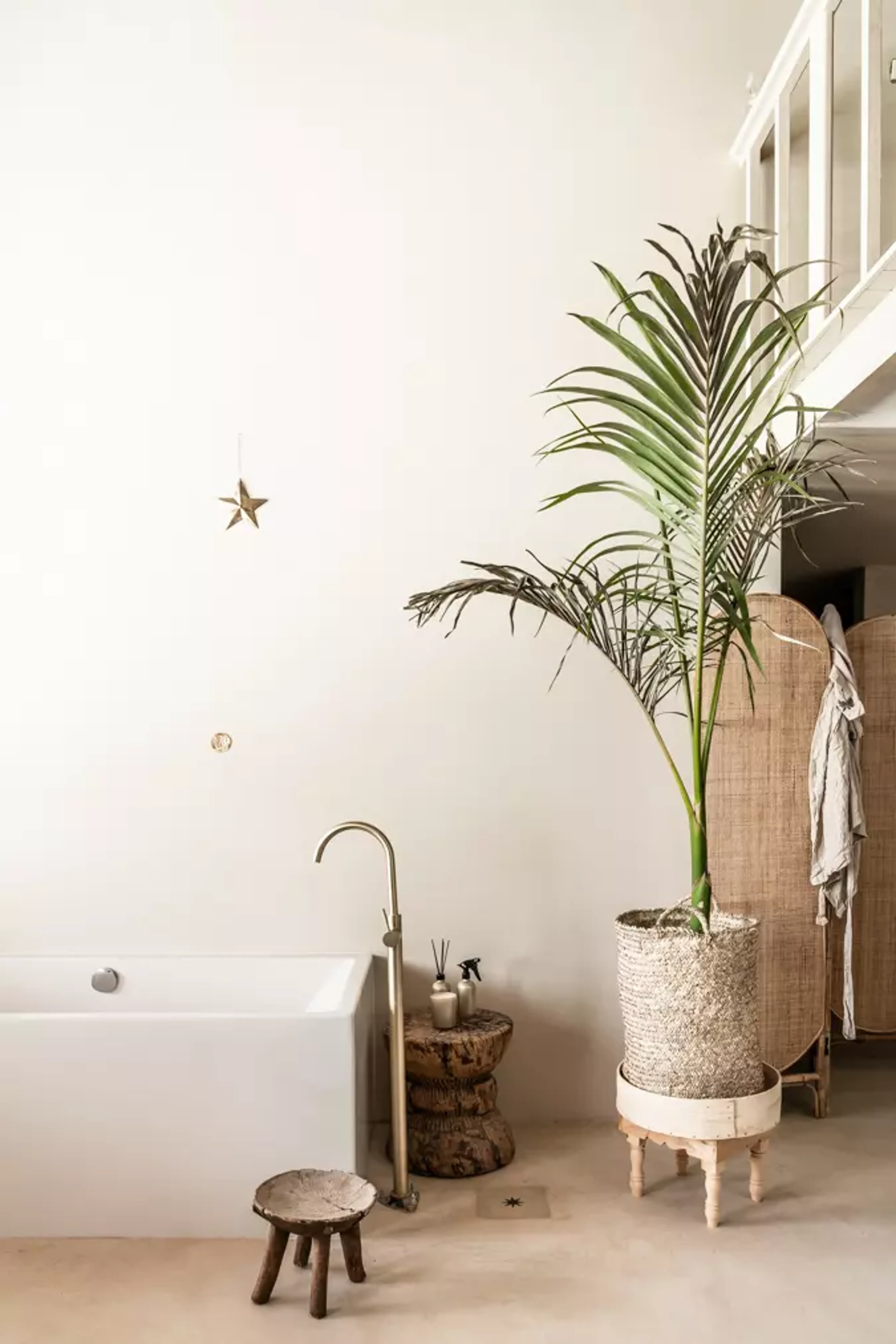 Wereldse elementen met natuurlijke materialen en lichte kleuren. Dat is de interieurstijl van Sanne. Haar huis, een oude basisschool, moest flink worden opgeknapt. “Alles was oud en moest gerenoveerd worden, maar we wilden de karakteristieke elementen van de oude school wel behouden, zoals de oude balkenplafonds en hoge ramen met stalen kozijnen die je in onze slaapkamer ziet. Ook de vide in onze slaapkamer moest blijven.” En de slaapkamer met aangrenzende badkamer, die moest een echt vakantiegevoel uitstralen. Een vleugje Marrakesh, met de sfeer van een oude Spaanse finca om echt in tot rust te komen. En dat is gelukt!