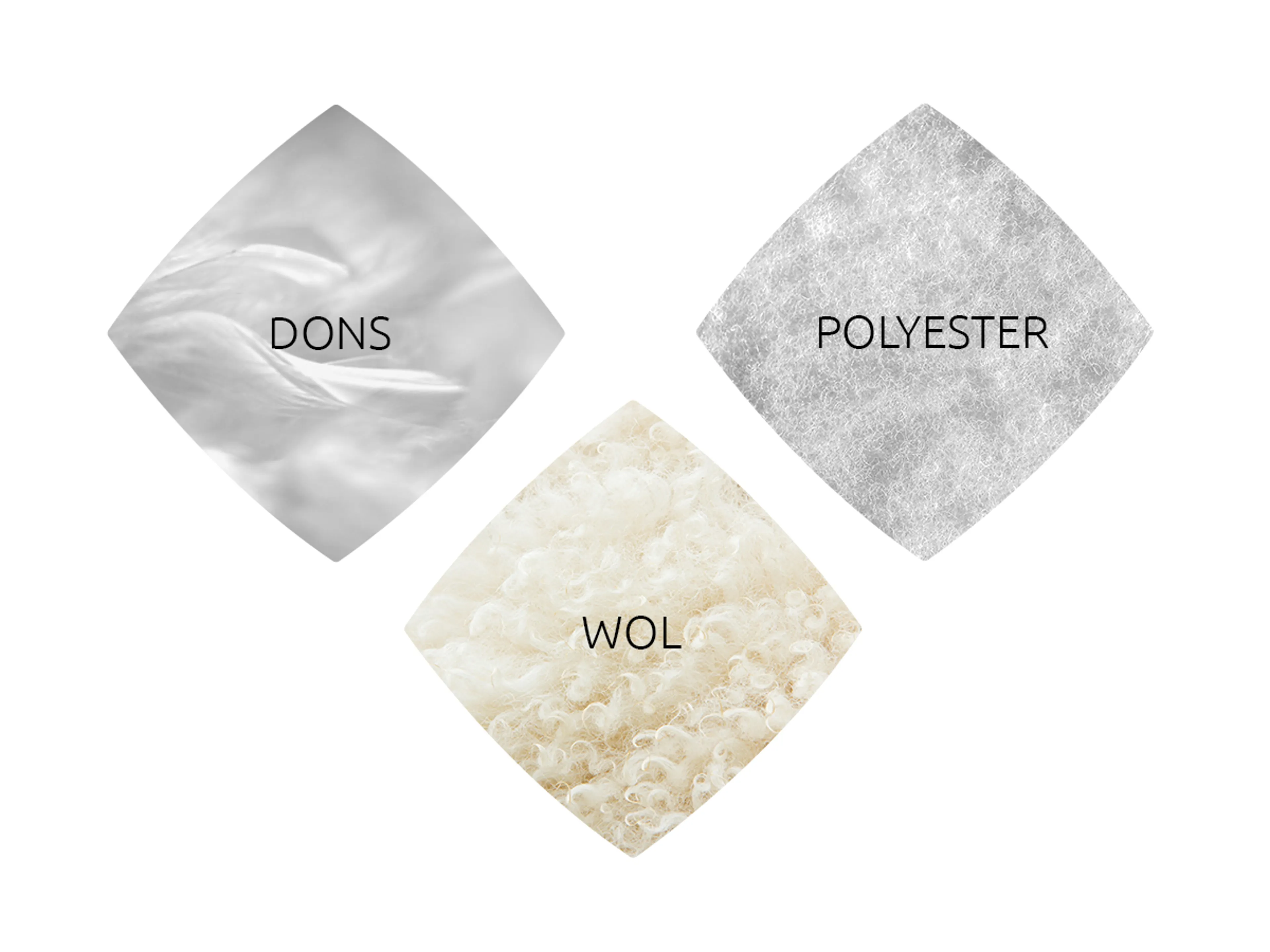 • Dons Een donzen dekbed houd je de hele nacht warm. Dons zorgt voor een goede isolatie, omdat de zachte vulling de lucht vasthoudt. Daarnaast werkt het vochtregulerend en voelt het heerlijk licht aan door de veren.