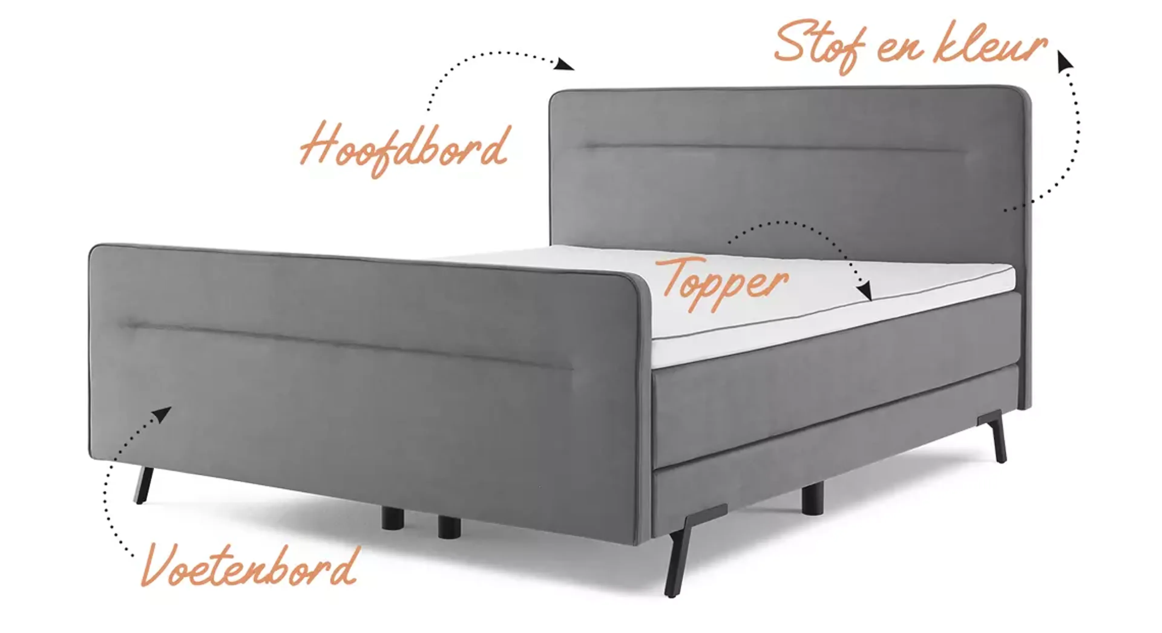 Maak je nieuwe boxspring eigen door te kiezen voor een stof en kleur die perfect bij jou en je slaapkamer passen. Je hebt keuze uit diverse kleuren van grijs tot geel. En keuze uit diverse stoffen van fluweel tot een lederlook.