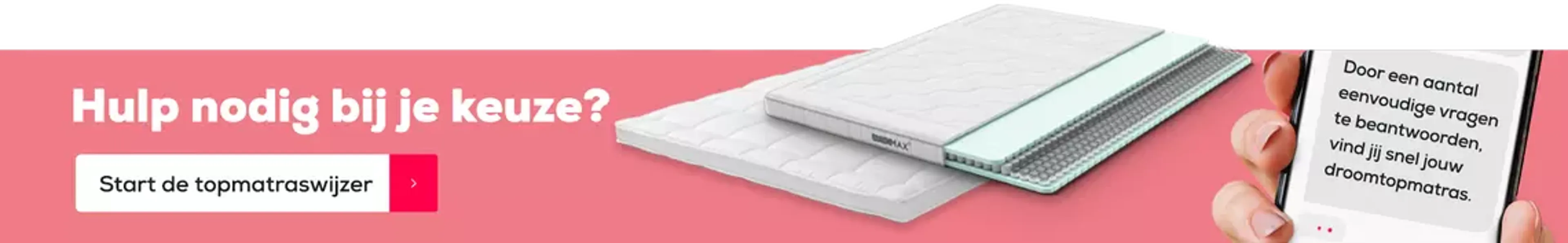 Bij Swiss Sense hebben we een ruim aanbod aan toppers met de afmeting 160x210. Je kunt hierbij kiezen uit verschillende materialen zoals een koudschuim topmatras, een latex topmatras, of een traagschuim topmatras. Wil je weten wat voor type topmatras het beste bij jou past? Ga dan langs bij de dichtstbijzijnde Swiss Sense winkels en laat je persoonlijk adviseren door een van onze slaapadviseurs. Je kunt dan ook gelijk even proefliggen. Een topmatras kun je ook eenvoudig online kopen, want ook online kun je een slaapadviseur raadplegen voor een persoonlijk slaapadvies.